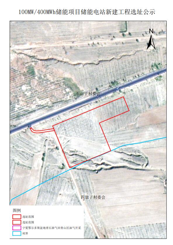 中国储能网讯:8月25日,盐池县自然资源局发布100MW/400MWh储能项目储能电站新建工程选址公示。